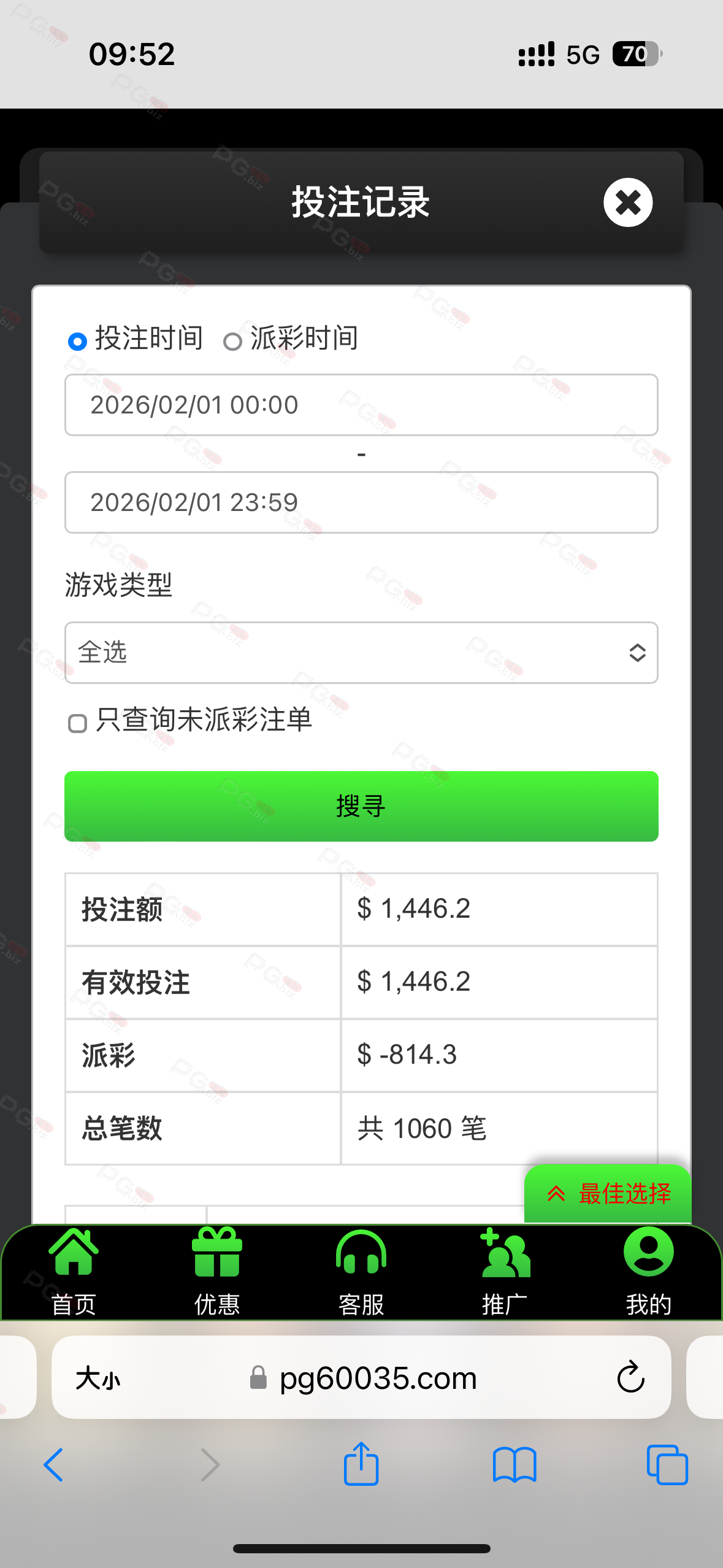 见过最垃圾的平台没有之一。第一次遇到首存都说多ip的,问题是我第一次注册这个平台。最可气的是370注几乎全是空转,妈的,最后剩下0.4给我进胡80倍的。真是恶心死我了。真的不骗人,几乎全空转,有三注盈利一丁点就不说了。