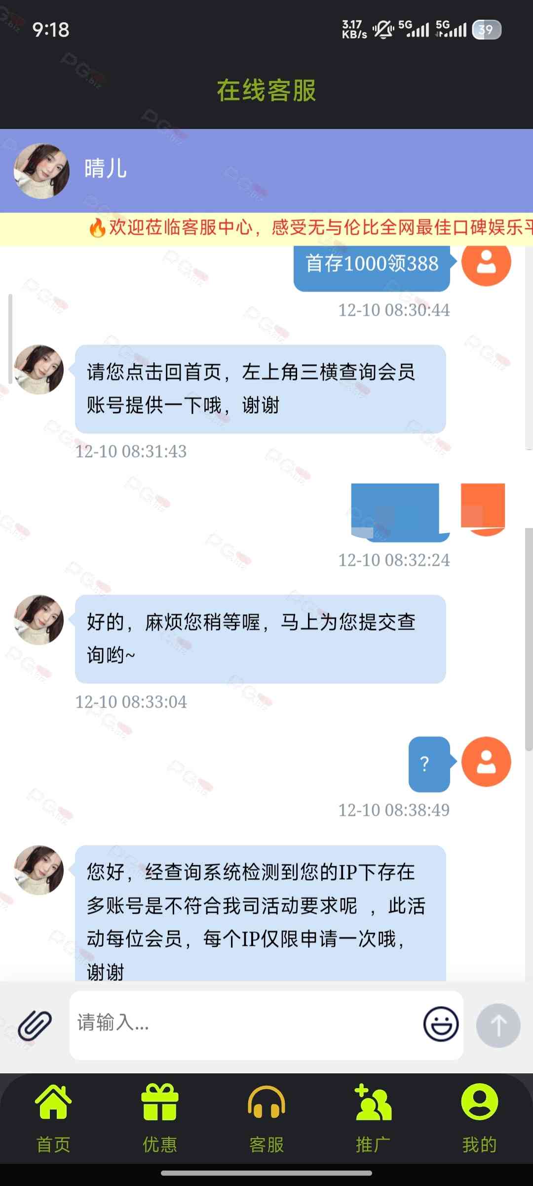 撸成功的老哥,请跟客服说您是从PG论坛 【PG.Biz】过来的。