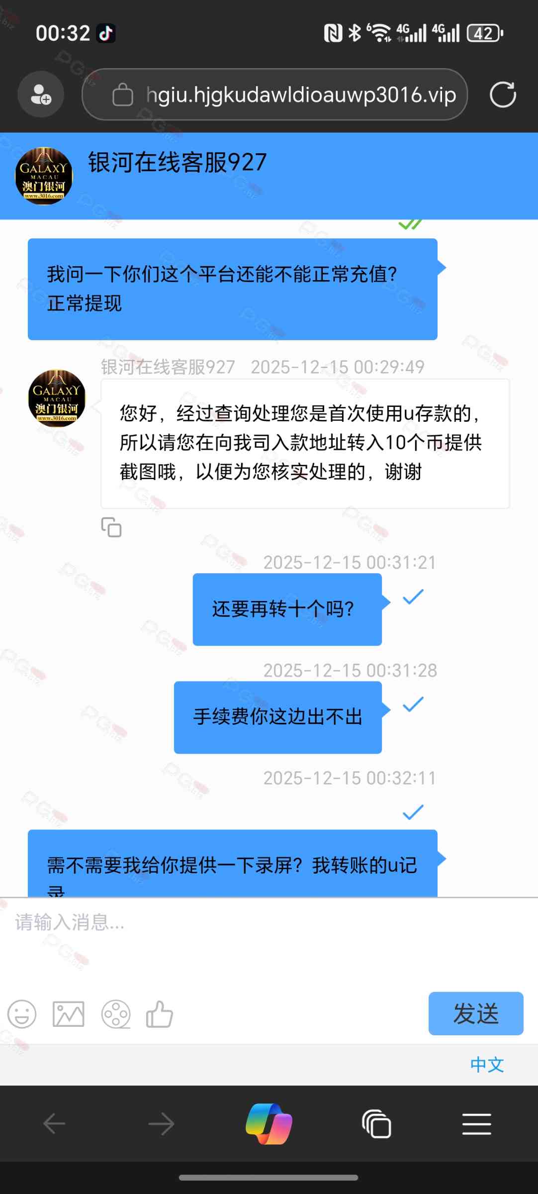 第一笔充了二三十个u,还要我再转,一直也不说话,有没有人来处理一下?