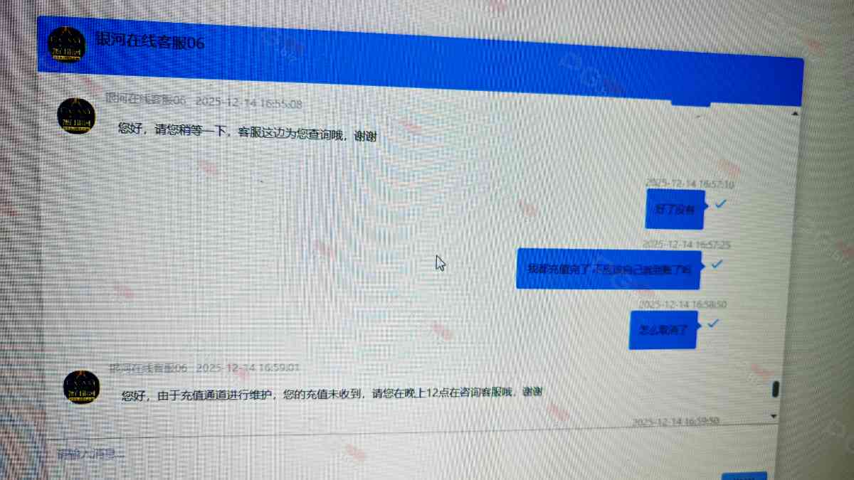 1820761 QQ充值200不到账问客服直接把我拉黑了 就这种平台还能上担保区