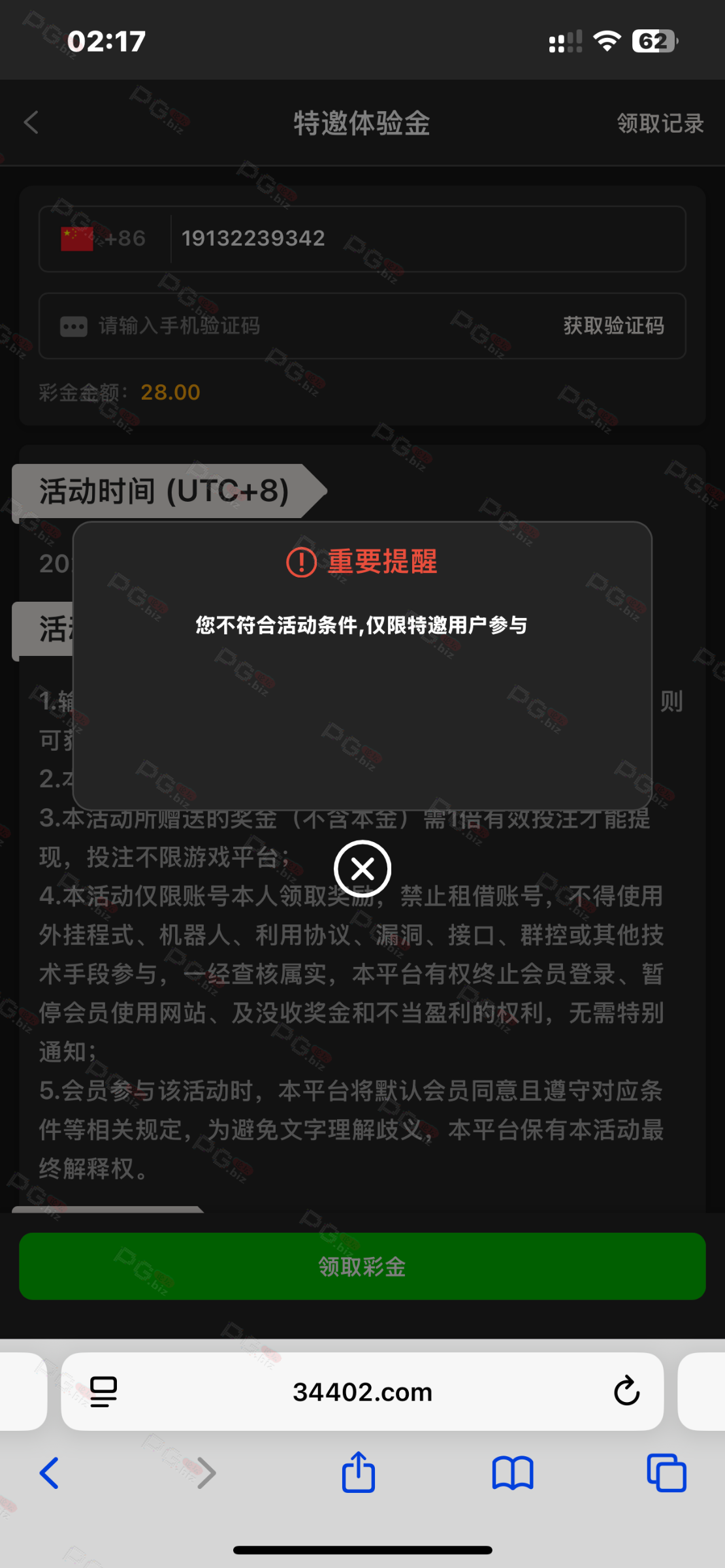 这台子昨天给我打电话说特邀送彩金,今天我用幸运星的推广链接进去,居然领不了特邀送哪28,太坑了