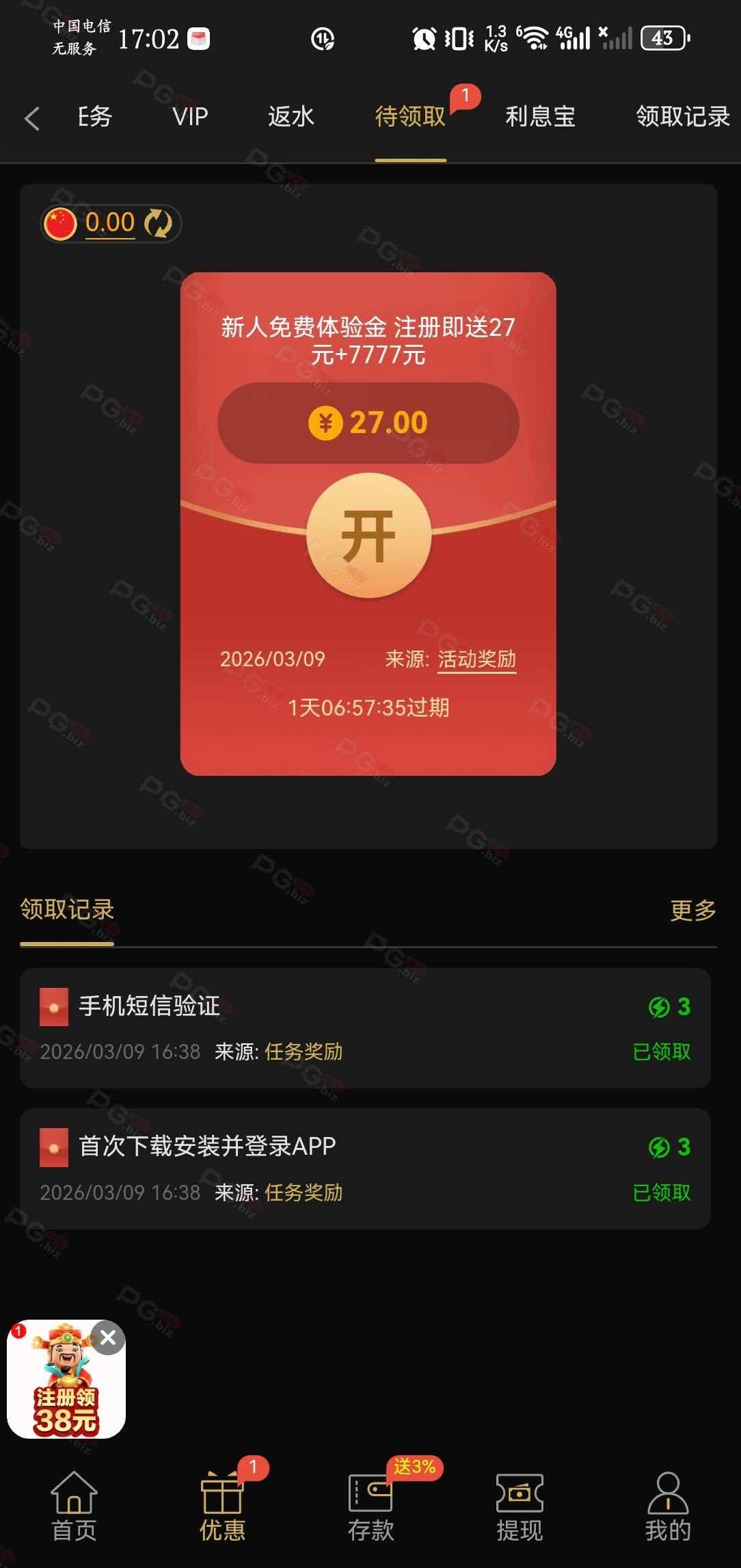 以前注册过,没送